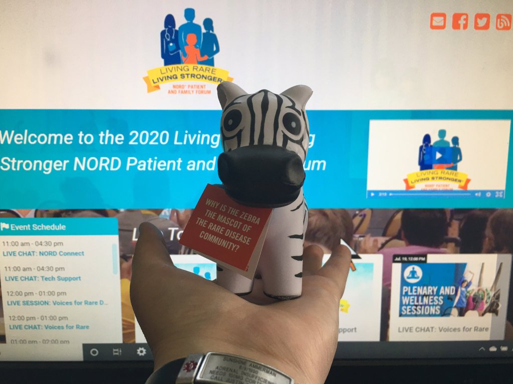 As a rare disease patient and advocate, I have been an enthusiastic supporter of the National Organization for Rare Disorders (NORD) for many years, so I was absolutely thrilled when I discovered the annual NORD Living Rare, Living Stronger Patient Forum was coming to Cleveland, Ohio in 2020! It’s only a few hours away from my home, so a hotel room was booked and road trip planned! I was excited at the prospect of meeting other rare disease patients and NORD representatives I’ve had the pleasure of corresponding with online, and had high hopes for networking and broadcasting live from the conference to share with fellow zebras at home!