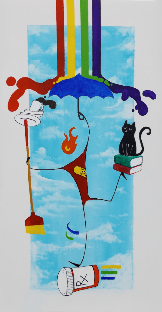About four years ago, my local art gallery asked for submissions for a regional art exhibit. I had just made a really poignant piece detailing life with a chronic illness, and even though it was larger than the allowed size for submissions, I asked if they would accept it anyway. There was some awkwardness about it, and the board agreed to accept the entry even though I sensed they were unhappy with breaking their rules. I also found out about that time that the rules were in place because this was a competition- with cash prizes. I pulled out of it last minute because of the embarrassment and anxiety, but they offered to hold onto it until the next show where its size did not break any rules, and I agreed.
